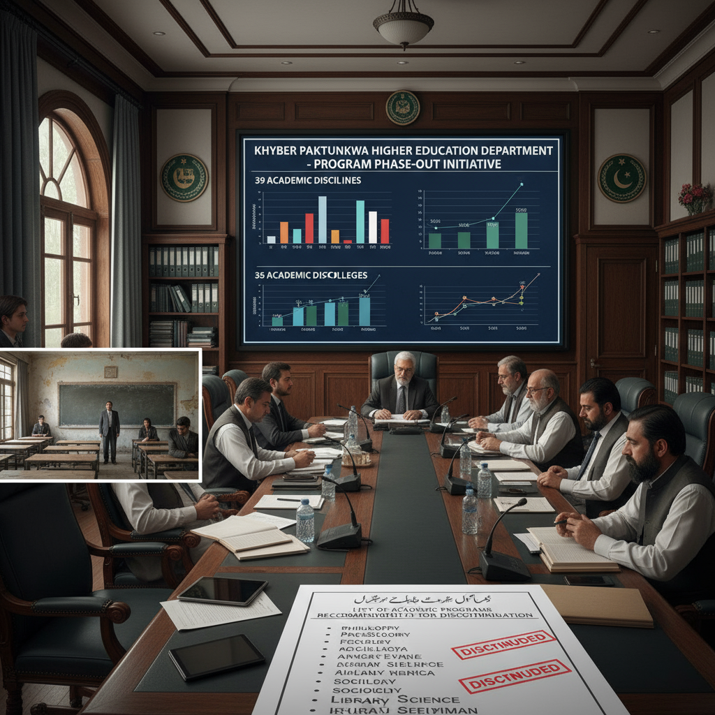 Education KP Government Colleges to Discontinue 39 Low-Enrolment Programmes. PESHAWAR: The Khyber Pakhtunkhwa (KP) Higher Education Department has decided to phase out several academic programmes in public sector colleges... September 5, 2025 0 Comments