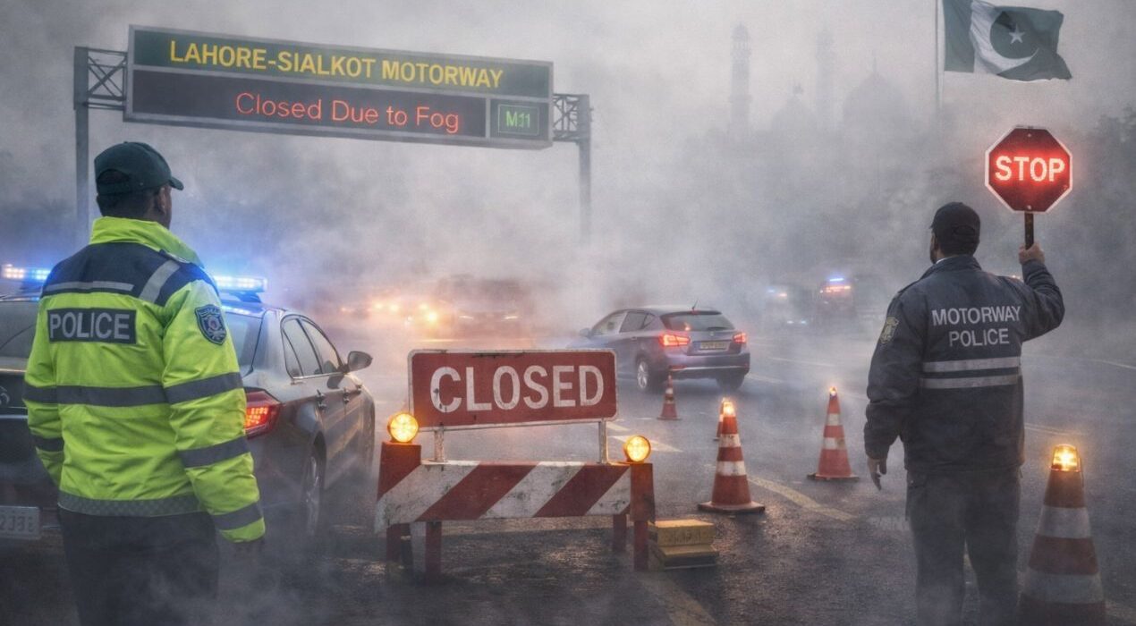 Authorities shut down the Lahore-Sialkot Motorway M11 overnight as dense fog created hazardous driving conditions. Lahore-Sialkot Motorway closure occurred between Monday night and Tuesday morning to protect lives and property. The Motorway Police spokesperson confirmed the closure was necessary due to extremely poor visibility. Fog has also been reported in several cities along the National Highway network. Commuters face dangerous conditions with visibility dropping to critically low levels in affected areas. Authorities have issued clear warnings about lane violations leading to serious accidents during fog. Drivers must strictly follow lane discipline and avoid unnecessary risks.