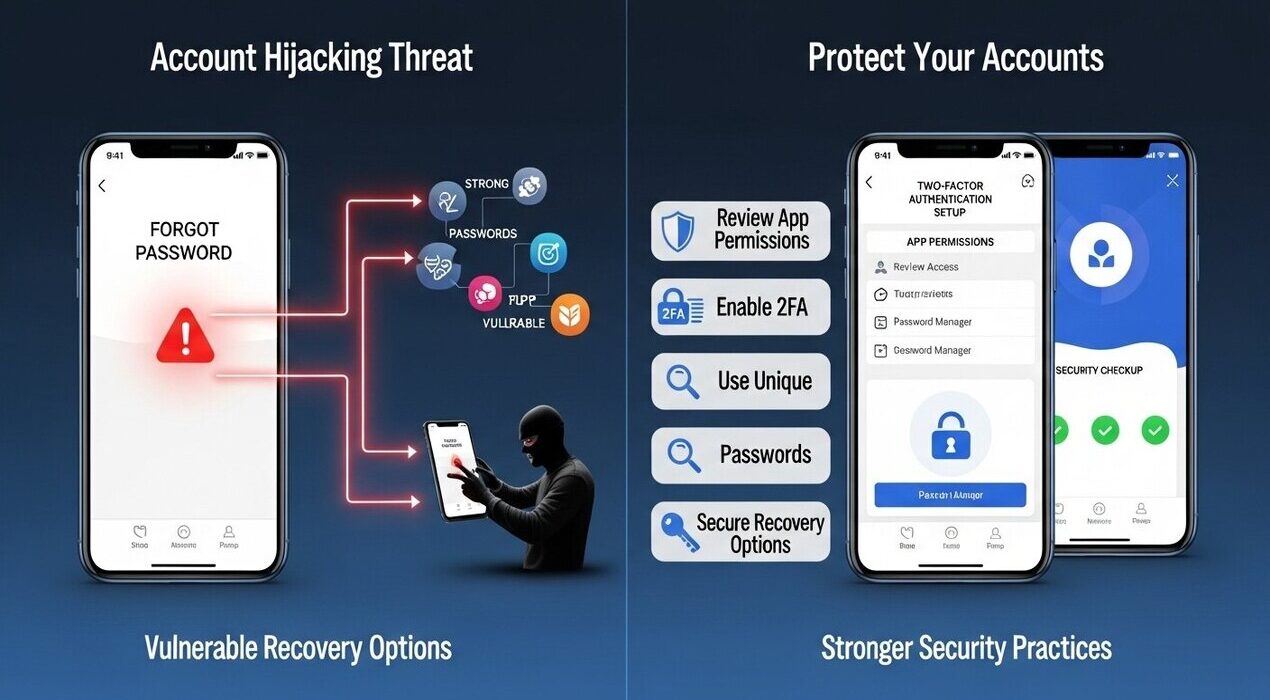 Most hijacking attempts begin with phishing or fake recovery requests. Once hackers gain control of linked accounts, they can easily move laterally and compromise other services. The danger lies in how quietly it happens — victims often discover the issue only after seeing suspicious activity or being locked out.