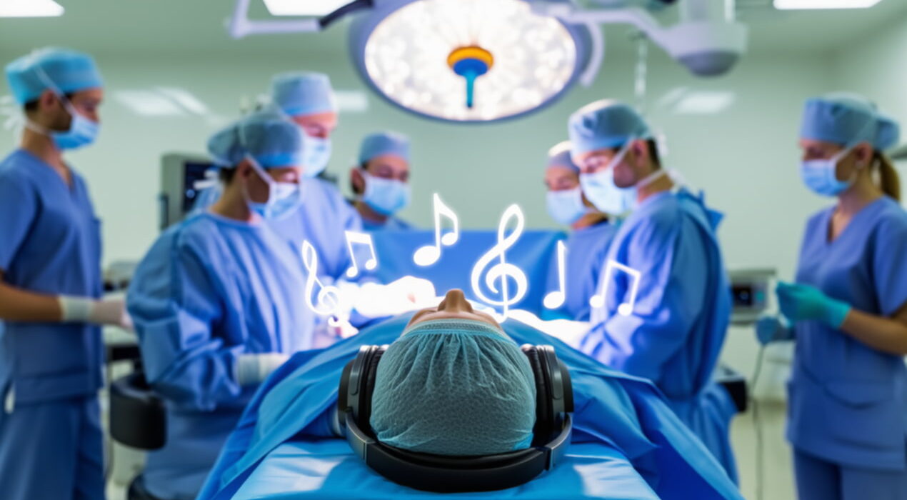 A patient lies on the operating table in Delhi as surgeons prepare to remove her gallbladder. She is fully unconscious under general anaesthesia. However, soft flute music flows gently through her headphones. The music reaches the parts of her brain that stay active even during deep sleep. As a result, she needs fewer drugs and wakes up more clearly.